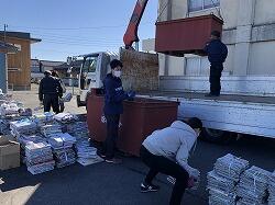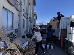大量の段ボールやアルミ缶で、四㌧トラックとコンテナが満杯になりました。