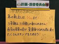 明日は、いよいよ「卒業式予行」です。本番に120%の成果が出せるように、みんなで心を一つにして臨みましょう!!