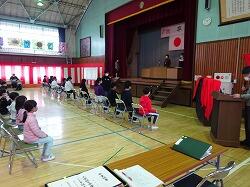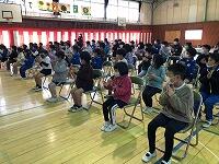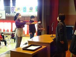 6年生の歌は、「旅立ちの日に」です。音楽主任の生伴奏が加わり、本番さながらの雰囲気となりました。13人という少ない人数ですが、一人一人が精一杯の声を届けようと頑張っていたため、とても感動的な歌になっていました。