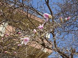 “こぶしの花と雪”など、春と冬の融合がふしぎな光景です