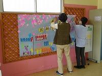 月曜の午後、ボランティアさんがお祝いのメッセージを掲示してくださいました。