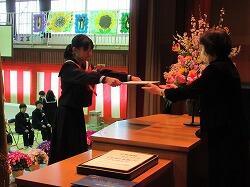 【卒業証書授与】担任の呼名に、しっかりと返事をして応え、胸を張って受け取りました。