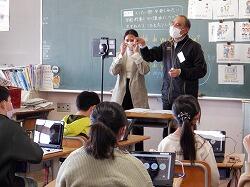 6年生と国府南小6年生が、オンラインで、外国語の合同授業を行いました