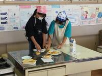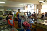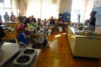 ピーラーの上手な使い方を教えてもらいながら6年生たちはサツマイモの皮むきです