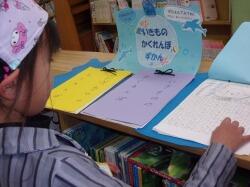 ご褒美は、図書館事務の先生手作りのかわいらしいしおりなど子ども達が好きな物ばかりです。