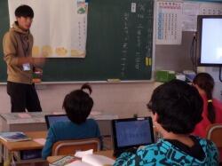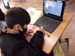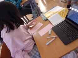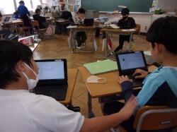 今日は、いよいよタブレットを使用し、パワーポイントでまとめます。先生のタブレットから、それぞれの進捗状況が一目でわかります初めてのパワーポイントなので、分からないことは、先生に聞いたり、3・4年生のグループで学び合いが深まったり・・・。