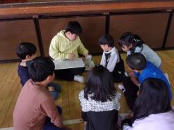 その後、子ども達は、1~6年のなかよしグループごとに分かれて、話し合いをしました。