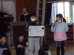 1~6年生のまざったなかよしグループで、高学年生がうまく下級生の意見を引き出し、下級生の目線に立って話し合いをしているところが印象的でした。どのグループも、どの児童も、テーマについて真剣に考え、みんなの前でも自分達のグループの意見を堂々と発表しました