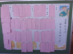 図書館事務の先生が、いつも、校内の掲示に力を尽くしてくれていますが、図書室前の掲示物も、いつもいろいろな工夫があり、子ども達を本の世界へ誘ってくれます