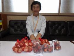 本日、更生保護女性会の本地区担当、荒川恵子様が来校され、チューリップ球根80個を寄贈してくださいました