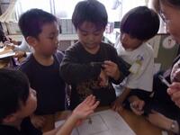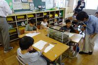 国語科の授業で、「しらせたいことを、みじかいことばであらわそう。」をめあてに、生き物や植物を観察しました。子どもたちは様々な視点からたくさん気付き、短い言葉でワークシートに書くことができました。