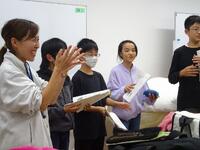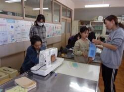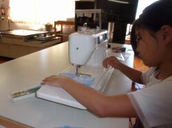 アイロンを使って折り、縫いやすくしてからミシン掛けを行います。ベテランの先生方が、手際よく教えてくださるので、大変ありがたいです