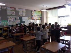 今朝ののびっ子タイムは、クラスごとに学びタイムです。