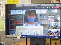 朝の会の時間の始めに、「臨時朝会」をおこないました。校長室と各教室をタブレットのTeamsでつなぎ、各教室では大型テレビで話を聞きながら参加しました。