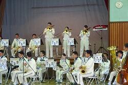 ↓【オープニング】拍手でお招きし、校長先生のあいさつと楽団の紹介がありました。そして、オープニング曲のご披露ですかっこよすぎて、みんな目を丸くして見ていましたよ