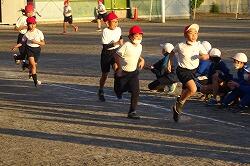 今日は、赤白に分かれて5周半走り、タイムを取っていました。