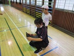 自分の動きをタブレットで撮影して確かめながら、次のよりよい動きにつなげています。