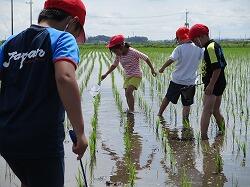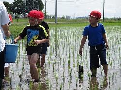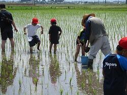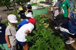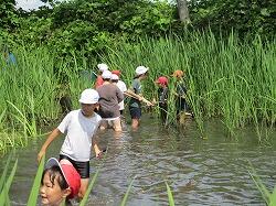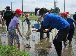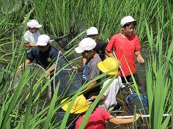 1、2年生、オープンスクール参加者の皆さんは、水田で「生き物調査」を行いました。