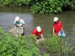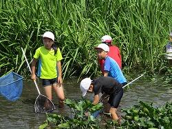 3、4、5、6年生は、赤渕川で「生き物調査」を行いました。