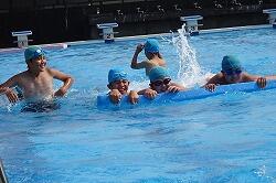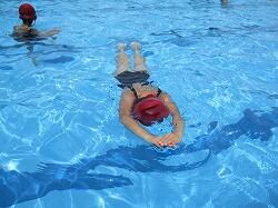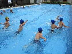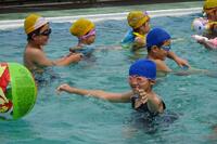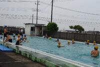 みんなで流れるプールを作って、流れに合わせて、浮いたり、バタ足をしたり、泳げる泳ぎをチャレンジしたりしました。
