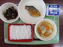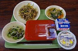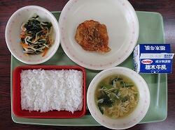 小松菜とかまぼこのソテー わかめスープ 牛乳
