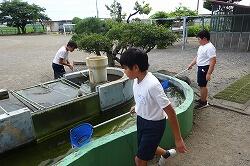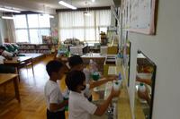調査をした生き物を水槽に入れて、観察しています。