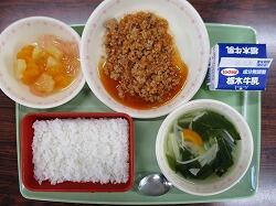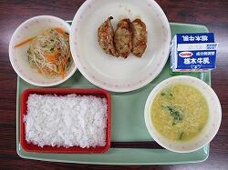 ごはん 油淋鶏 中華和え 卵ととうもろこしのスープ 牛乳