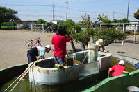 「生き物調査」の後は、用水路で足を洗ったり、後片付けです。