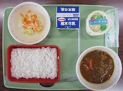 ごはん ポークカレー シーザーサラダ あじさいゼリー 牛乳