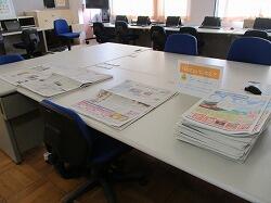 パソコン室に新聞に親しめるコーナーを設置しました。
