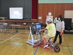 今回の教室は、栃木県の県民生活部くらし安全安心課からお2人の講師をお招きして、「自転車シミュレーター」という機器を活用しての実施でした。