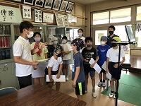 体育館は、暑くなることが予想されるので、体育館で実施する計画を変更して、前半はリモートで、後半は校庭で行うことにしました。