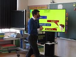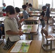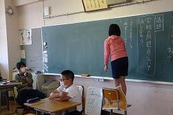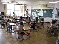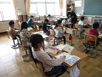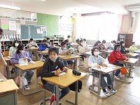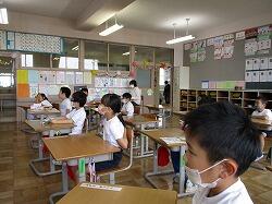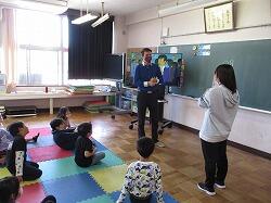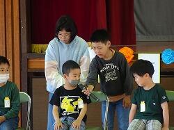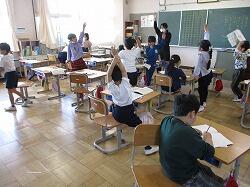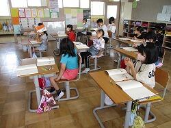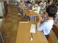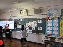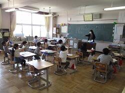 後半は、アルファベットの発音等の復習をしました。授業がテンポよく進み、子どもたちは、自然と英語に親しむことができました。