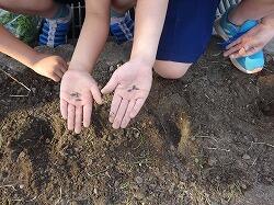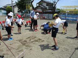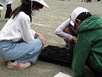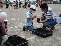 昼休みの『さタイムタイム』の時間に、全校児童で、ひまわりの種をポットにまきま