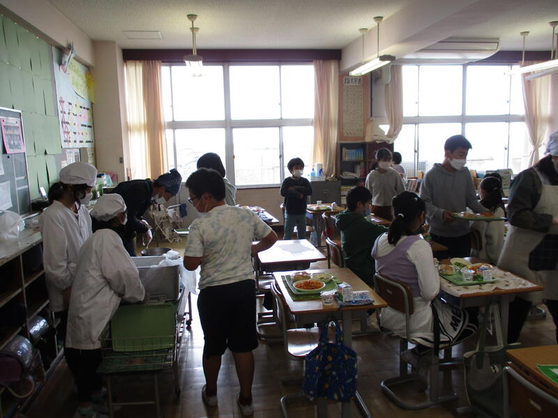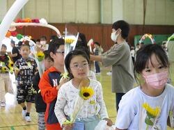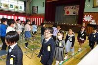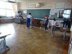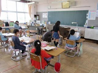 した。1年生から6年生までが縦割り班(なかよし班)を作り、協力して