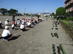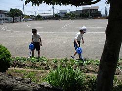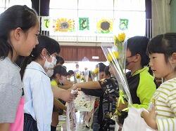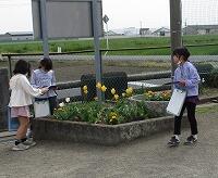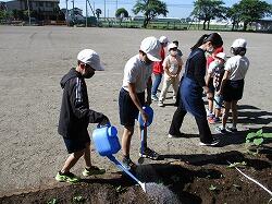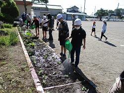 練習後、6年生がひまわり等、花壇の水やりをしてくれました。