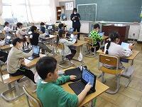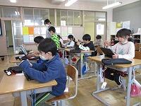 <4年生>タブレットを使って、漢字の学習をしていました。楽しく学べますね。