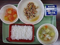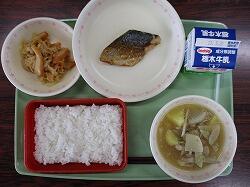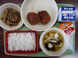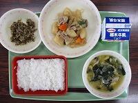 ごはん 鶏の照り焼き ひじきの炒め煮 味噌けんちん汁 牛乳