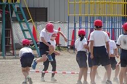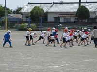 1、2年生が体育の時間にリレーにチャレンジしました。