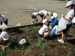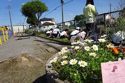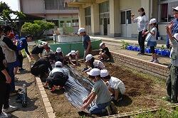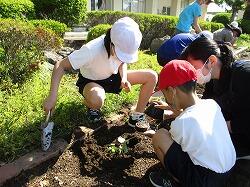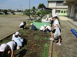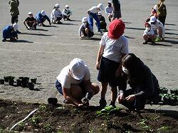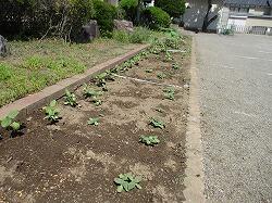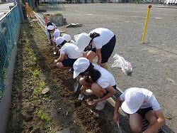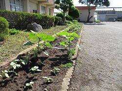 先日、緑化委員会の児童が校庭南側の花壇に種をまきました。