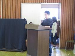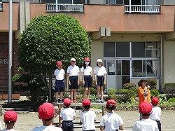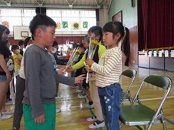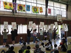 最初に、担当の先生から、歌の指揮者として盛り上げてくれる児童の紹介がありました。