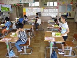 時間差で教室におじゃましたので、運動会のダンスの練習に取り組んでいたり、今日の予定をみんなで確かめたりしていました。