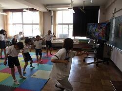 先生の動きに合わせて、ジャンプ、回転、ステップ等、いろいろな動きに挑戦しました。