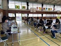 まず、全体役員会で「運動会」や「水辺の活動」の協力について説明をし、皆様からのご意見をいただきました。その後、本部役員会で「健康ボランティア委員会リサイクル品回収」や夏休み中の「PTA親子奉仕活動」について話し合われ、最後に今回のリサイクル活動の反省をしました。