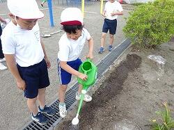 「水が少なかったかな?」「多すぎたかな!」と水の量などを考えながら水やりをしていました。