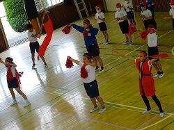 本番は校庭なので、もっと間隔をあけて、大きな動きができますね