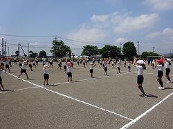 広い校庭で間隔を十分にとって、思いっきり手足を動かしながら踊りました