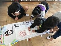 5・6年生は、国体のときに、他県から栃木県にくる方たちをおもてなしするための「のぼり旗」の作成にあたりました。