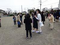 ▼全校児童が校庭に集まり、間隔をあけて並んで、係の先生の説明を聞きました。
