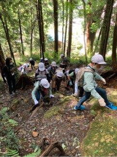 大中寺で七不思議をしっかり調べたあと、予定通り直登ハイキングに出発しました笑う